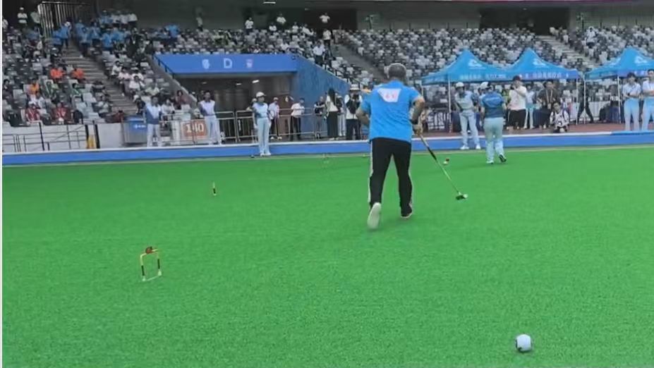 另一边,操场上的特色文体活动也吸引着冠军们的目光——10名书法班学生现场挥毫,写下“体育强国”“拼搏”等字样;掐丝珐琅展台前,学生向奥运冠军展示亲手制作的奥运主题文创。最热闹的当属运动互动环节,杨秀丽和郭伟阳在“不倒森林”游戏中,和学生们一起握住长杆,配合保持平衡。“和冠军一起玩游戏,太开心了!”参与互动的同学说,“我以后也要像他们一样,不怕困难,坚持运动。”