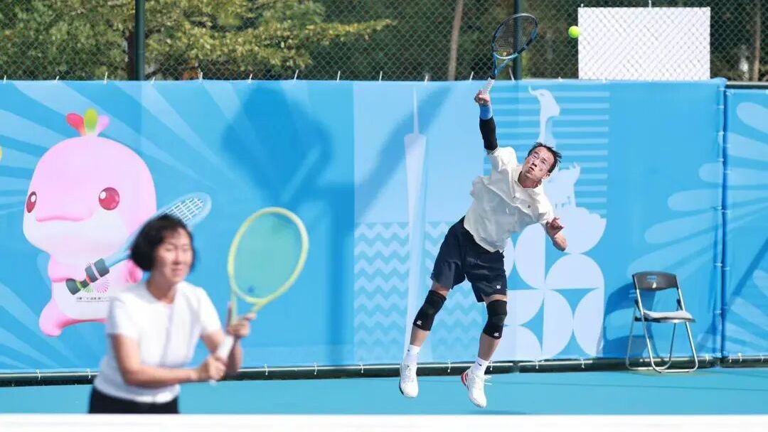 走进广州南沙国际网球中心,第十五届全国运动会群众比赛网球项目正在这里展开。11月17日,迎来了混合团体、男子团体、女子团体三个项目的决赛。场上虽然参赛的都是业余选手,但球风毫不逊色,他们步伐灵活,配合默契,击球精准有力。一旁的计分牌组别显示着“混合团体第二双打100岁+”的字样,这个“100岁+”的设置是什么意思?记者在比赛现场采访了中国网球协会副秘书长孙文兵,请她详谈混合团体项目设置的初衷和特点。