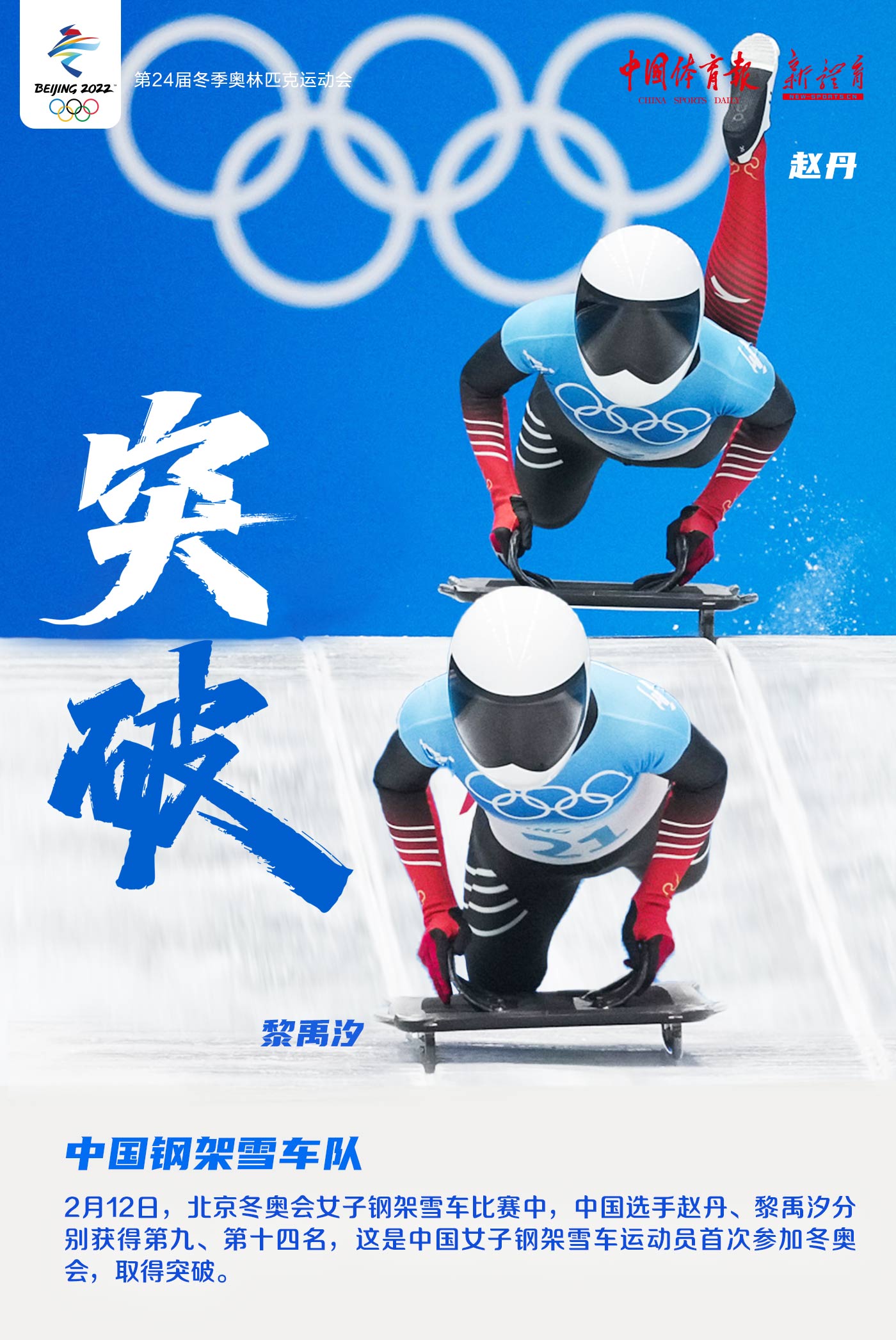 冬奥海报丨突破!中国女子钢架雪车冬奥首秀